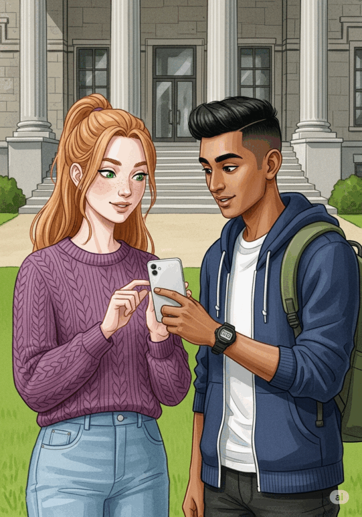 Arjun meets Lena in front of the library. He wants to study with her. He asks: “Lena, do you have time?” Lena looks at her phone. She says: “Yes, on Tuesday at 4:00 PM.”