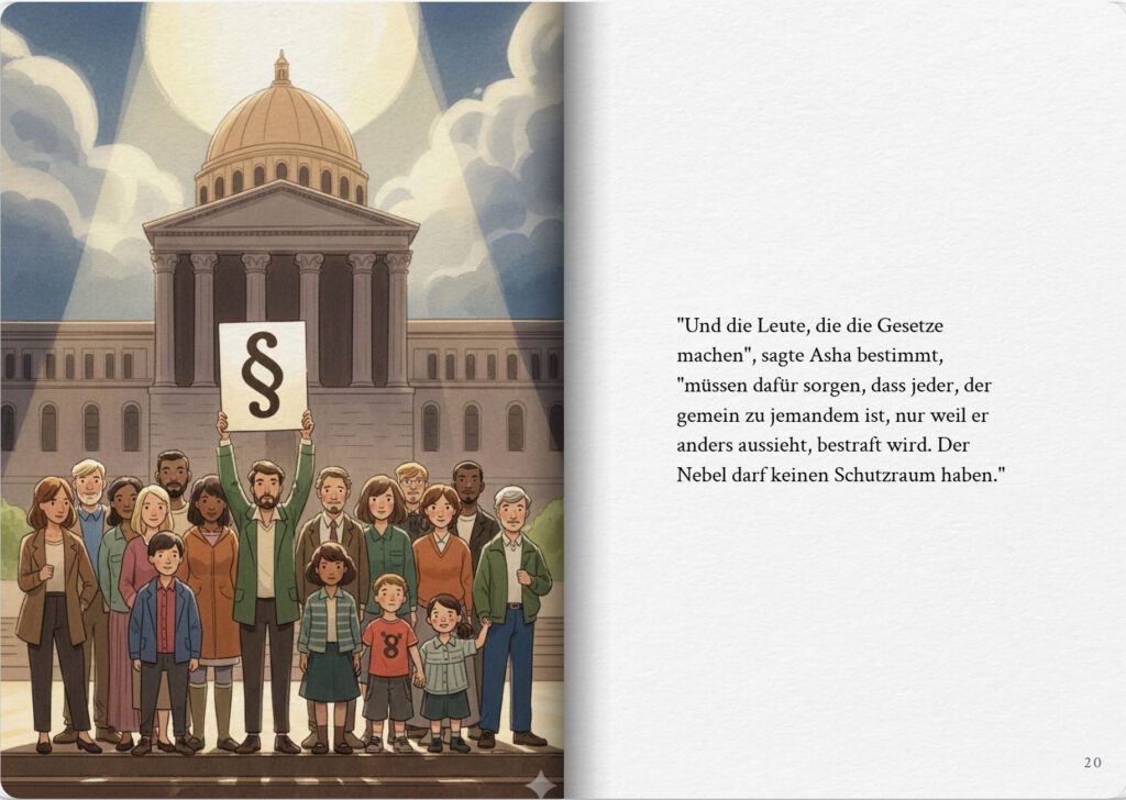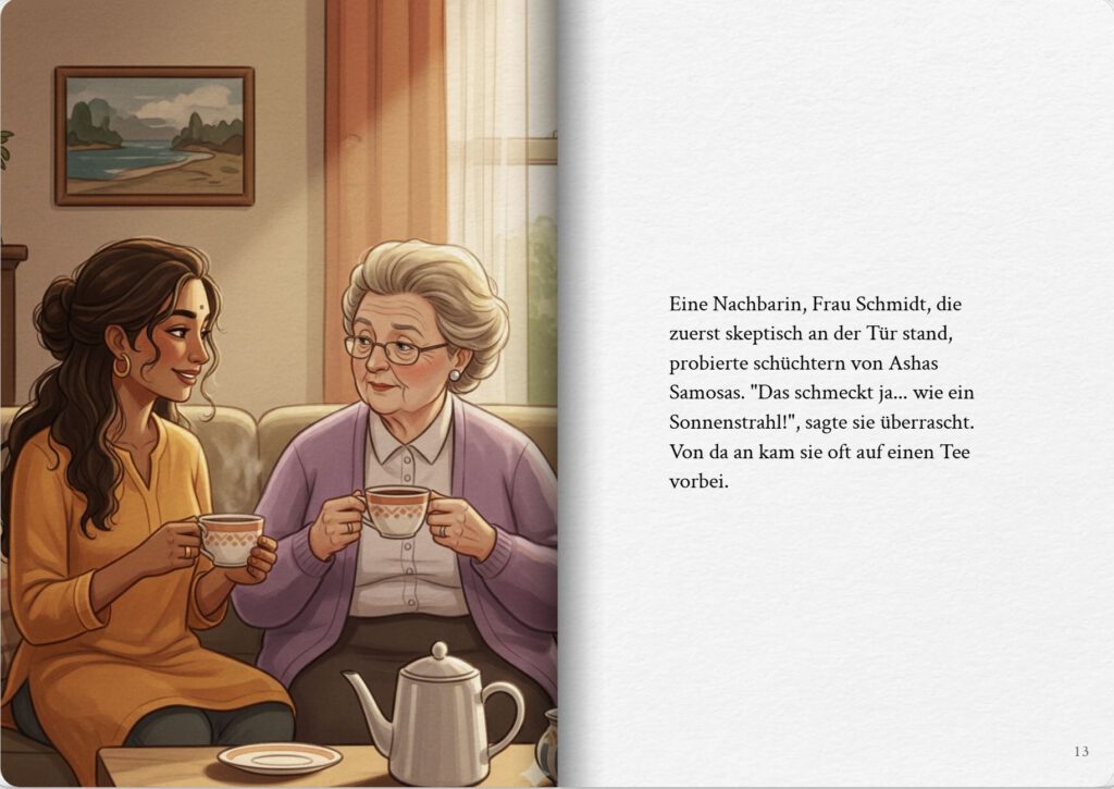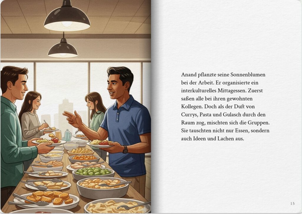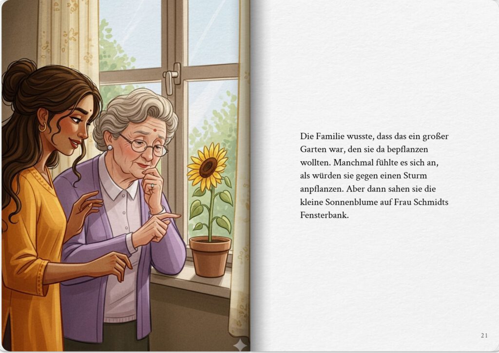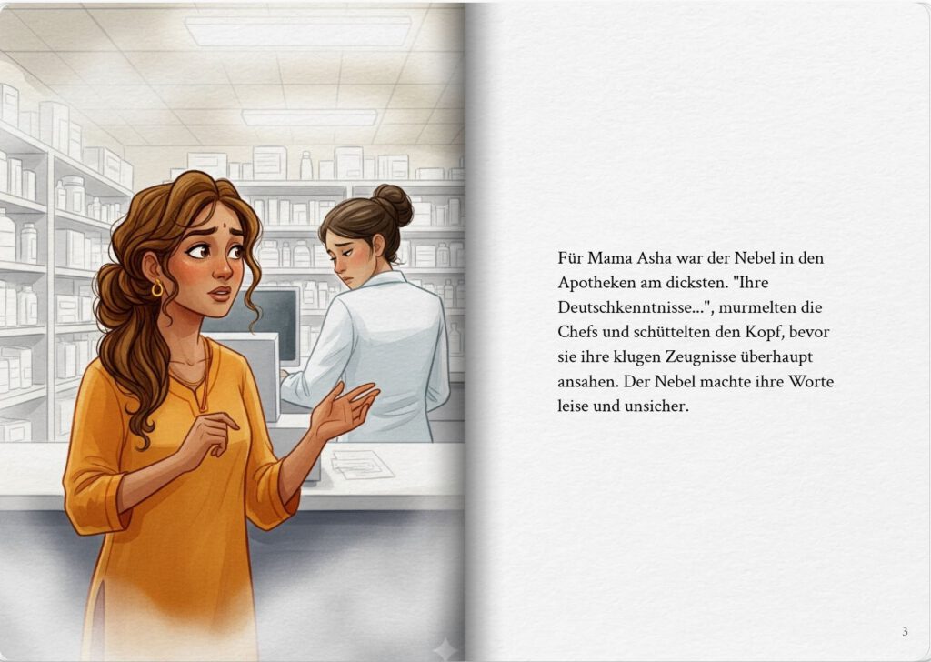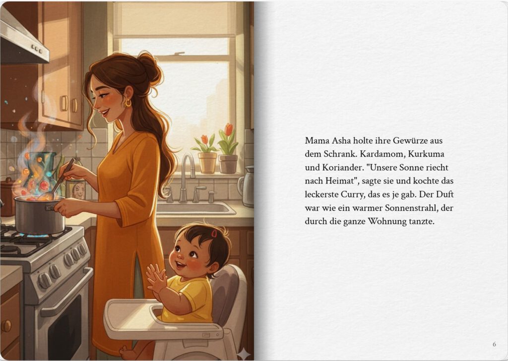 Eine Geschichte über eine junge Familie aus Indien, die nach Deutschland gezogen ist. Die Geschichte richtet sich an Kinder im Grundschulalter und soll ihnen und ihren Eltern Strategien an die Hand geben, wie sie mit Diskriminierung umgehen und sich in ihrer neuen Heimat wohlfühlen können.