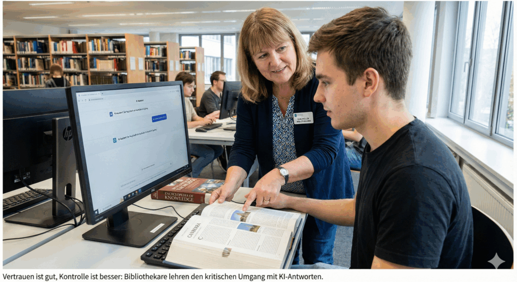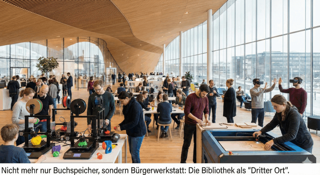 Bibliotheken werden zur “Civic AI Commons” – einem öffentlichen Raum, der Zugang zu teuren Technologien bietet und digitale Mündigkeit lehrt. Bibliothekare werden zu “KI-Navigatoren”, die Bürgern beibringen, wie man Fake News erkennt und KI-Prompts schreibt.