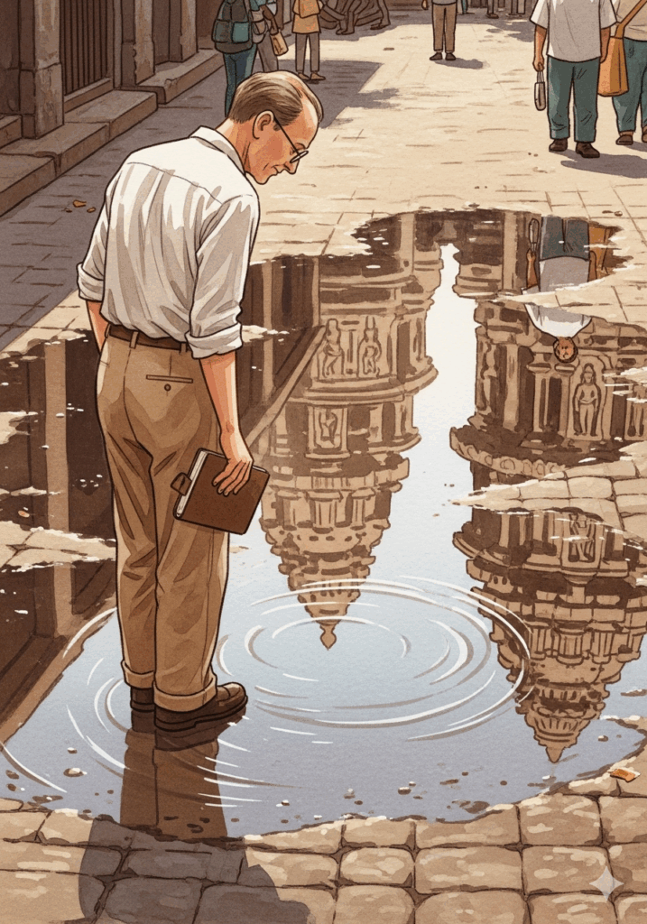 Carl war ein Mann, der Träume studierte. Er verbrachte seine Tage damit, die verborgenen Welten in den Köpfen der Menschen zu kartieren. Eines Tages erhielt er eine Einladung, nicht in einen Geist zu reisen, sondern an einen Ort, der sich anfühlte wie ein lebendig gewordener Geist: Indien. Er packte seine Koffer, nicht für einen Urlaub, sondern für einen großen Vergleich.