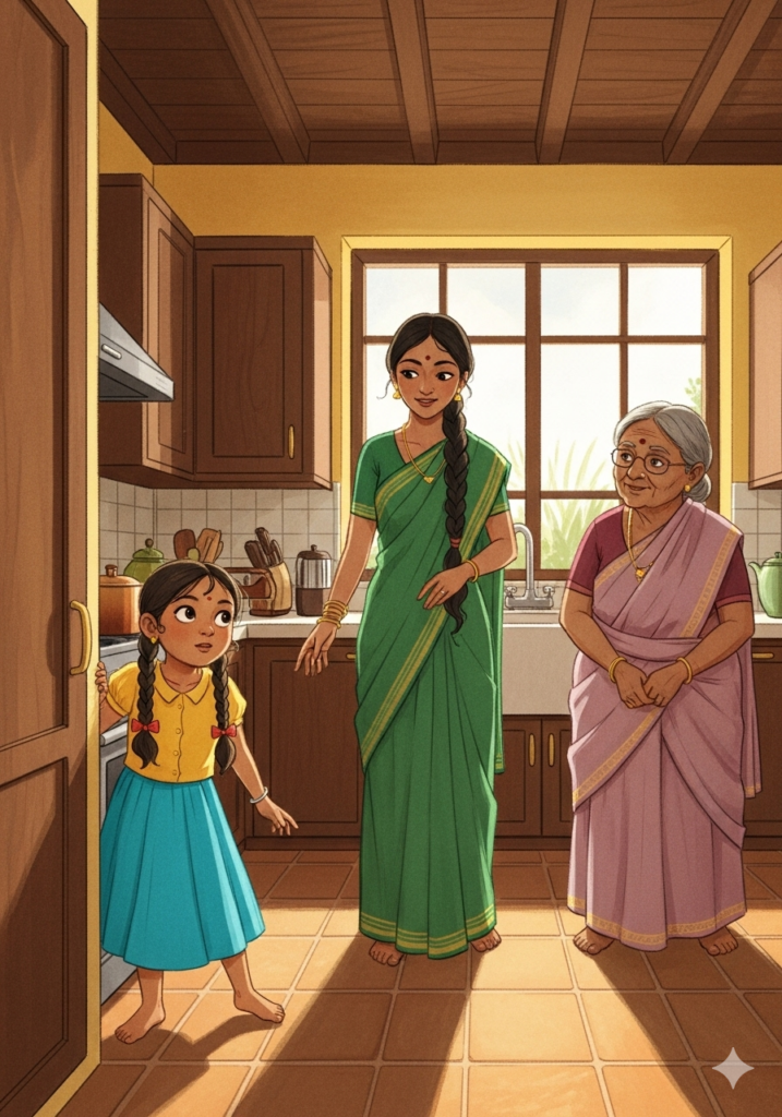 She followed it all the way to the kitchen where her Amma and Ammachi were busy, busy, busy!