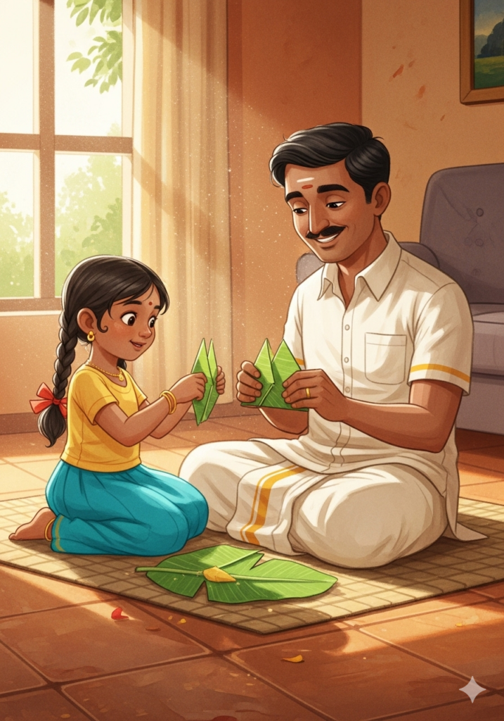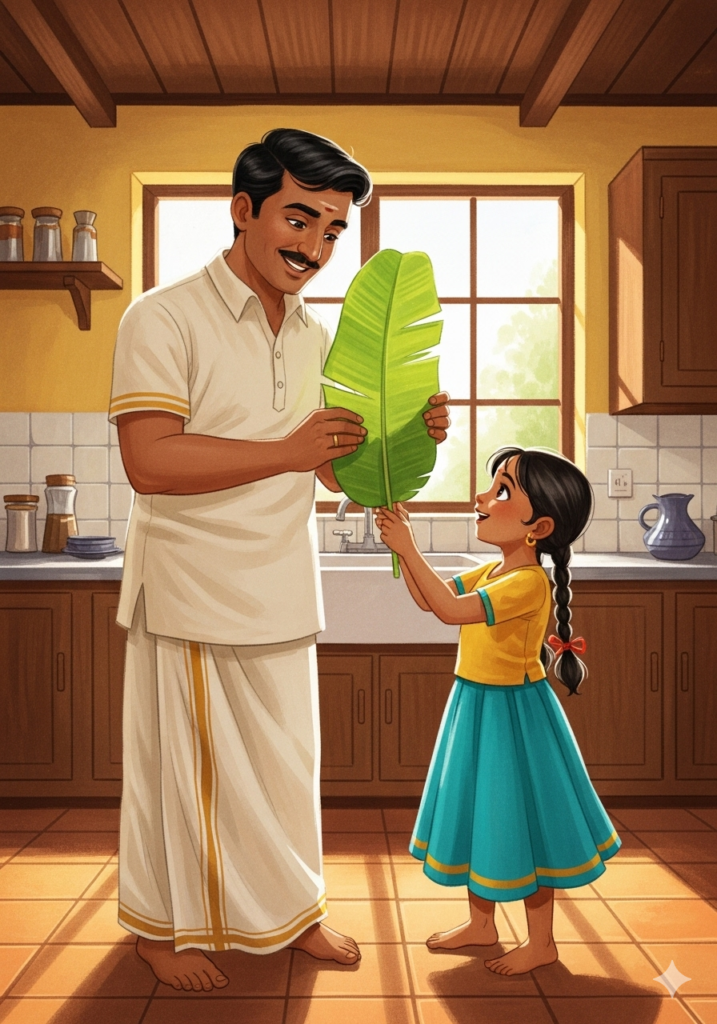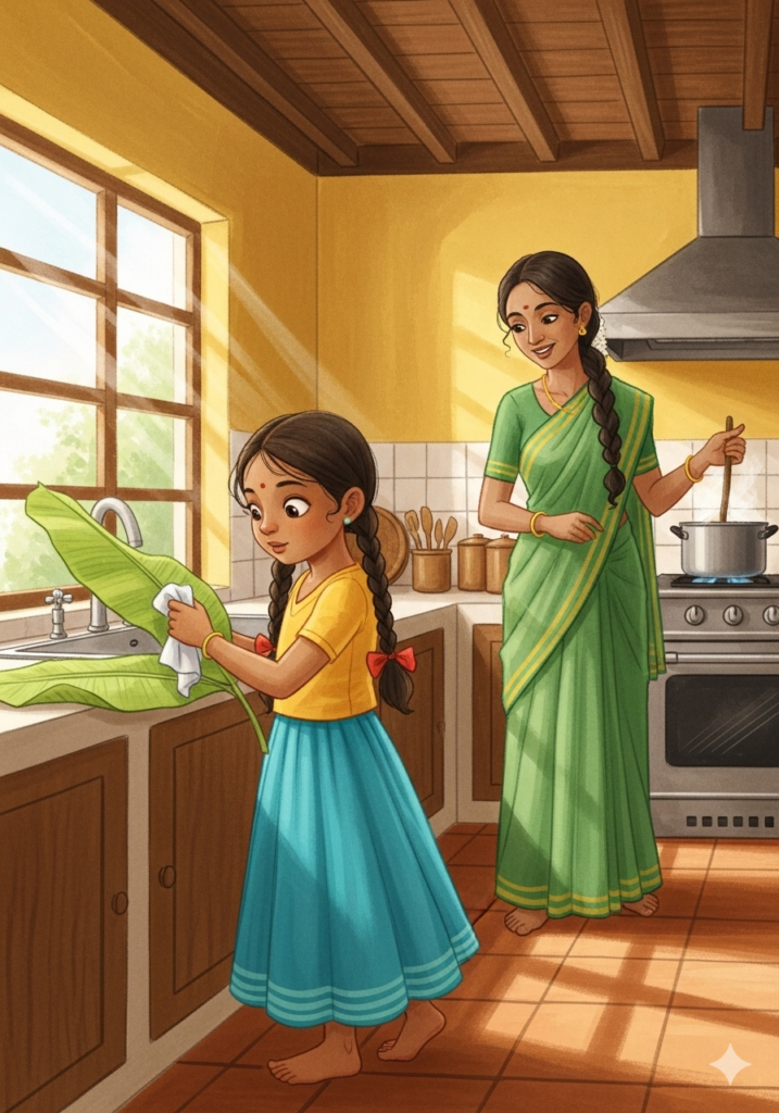 “And you, Meera,” said Amma, “can give our leaf-plates a bath!”